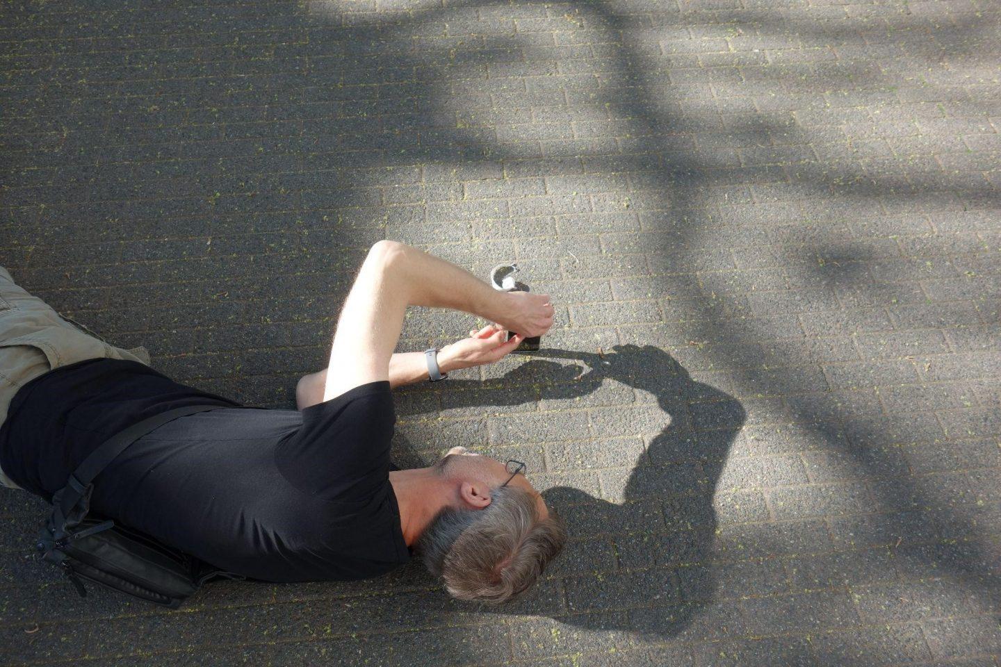 Es ist ein sommerlicher Mai-Morgen. Darmstadts Straßen sind ruhig und die Luft noch leicht kühl von der Nacht. Sonnenstrahlen bahnen sich durch die frisch-grünen Baumkronen und werfen Schatten auf die Altbau-Fassaden des Johannesviertels. Von der Frankfurter Straße gehen viele Seitenstraßen ab. Blühende Vorgärten und verschnörkelte Balkone reihen sich aneinander. Vereinzelt sind Passant:innen oder Fahrradfahrer:innen unterwegs. Niemand eilt hier. Mitten auf dem Gehweg hat sich ein groß gewachsener Mann in voller Körperlänge ausgestreckt und fotografiert mit seinem Handy einen Löwenzahn, der in einem rechtwinkligen Bogen aus einer Mauer herauswächst.