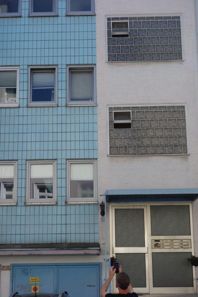 Heute ist der letzte Bezirk für das Fotoprojekt dran. Das Johannesviertel, das vom Stadtzentrum ausgehend nordwestlich liegt, ist zugleich auch Peters Nachbarschaft. Die Foto-Tour startet um 9 Uhr morgens, denn: „In den Morgen- oder Abendstunden sind die Lichtverhältnisse schöner“, erklärt Peter, klettert auf eine Mauer und fotografiert den Schatten, den eine Straßenlaterne auf den Boden wirft.